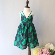 品牌2017夏款海边度假沙滩裙吊带裙夏装露背连衣裙女童菠萝裙子
