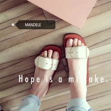 欧美2017新款女夏真皮休闲平底凉拖一字型皮带扣百搭平跟凉拖鞋女