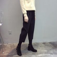 秋冬韩版阔腿裤女毛呢加厚休闲裤七九分裤高腰呢子萝卜裤哈伦裤潮