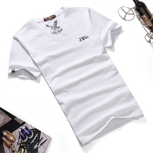 战地吉普短袖T恤男V领夏季大码简约弹力半袖男士宽松打底衫男装潮