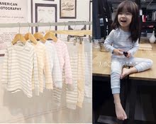 现货!2016新秋冬全棉护肚男女童宝宝家居套装睡衣长袖长裤开档