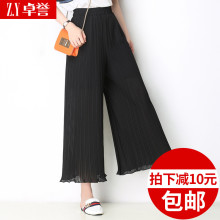 韩版百褶雪纺裙裤阔腿裤女夏薄款女裤高腰大码宽松九分裤裙