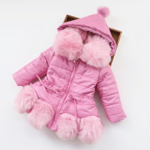 2016新款女童冬装加厚PU皮棉服中长款女宝宝拼毛棉衣儿童毛领外套