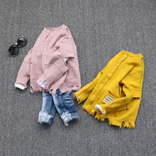 春秋新款女童春装针织衫2-3-4-5-6岁儿童开衫毛衣宝宝破洞外套潮