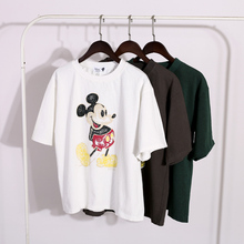 韩版2017春季女装新款打底上衣米奇印花宽松套头圆领短袖T恤衫女