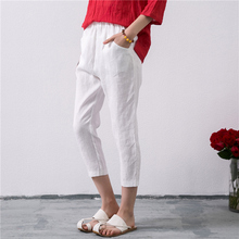 麻霖文艺原创女装2017夏季亚麻七分裤休闲裤棉麻修身小脚裤显瘦