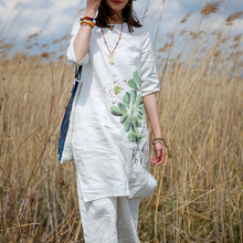 麻霖2017新款文艺原创夏季棉麻女装衬衫七分袖宽松白色亚麻上衣女