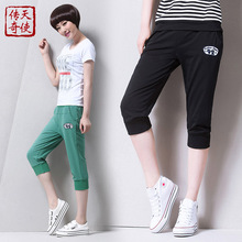 运动七分裤女宽松大码 薄款夏季休闲裤短裤数字刺绣女士卫裤夏装