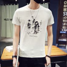 2017夏装新品男士竹节棉短袖T恤 潮 韩版修身青年印花圆领体恤 男