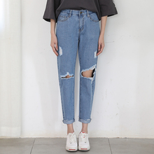 2016春夏季韩国bf男友风九分破洞牛仔裤女显瘦宽松牛仔裤女哈伦裤