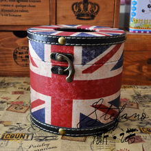 包邮欧式宫廷复古卷纸筒盒 英国米字旗木质皮革抽纸盒餐巾纸盒
