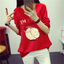 春秋季韩版女装卡通印花长袖T恤上衣薄款学生宽松休闲套头卫衣女