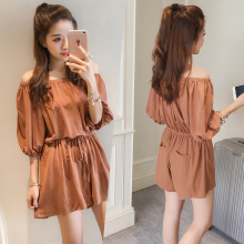 2017夏季新款韩版女装一字领露肩短袖连体裤时尚学生阔腿短裤潮