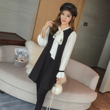 2017春装新款长袖雪纺连衣裙宽松气质韩版简约学院风连衣裙中长裙
