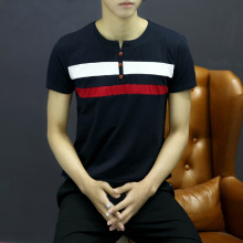 夏季男士短袖T恤 韩版修身领半袖印花体恤半截袖潮流男装上衣服