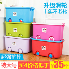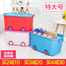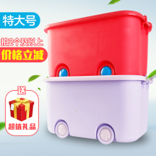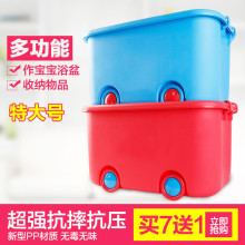 特大号加厚塑料收纳箱筐彩色儿童储物箱大号玩具卡通滑轮整理箱盒