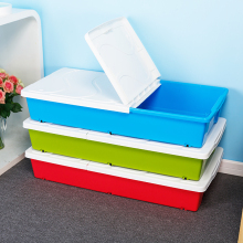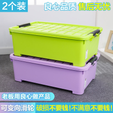 大号有盖整理箱滑轮鞋子床底收纳箱衣服塑料床下装棉被储物箱扁箱