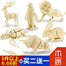 若态儿童3d立体拼图木质diy玩具小学生手工木头动物昆虫拼装模型