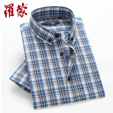 罗蒙短袖衬衫男士夏季薄款商务休闲纯棉英伦格子男式新款修身衬衣
