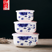 景德镇御磬陶瓷保鲜碗3个韩式骨瓷办公室带饭盒密封带盖碗微波炉
