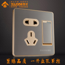 西龙开关插座 一开单控五孔插座不锈钢拉丝一开五孔单控插座面板
