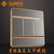西龙不锈钢拉丝开关插座面板 M4三开单控开关三联单控三位开关