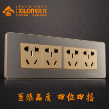 西龙开关插座面板香槟金不锈钢拉丝118型三位15孔插座 九孔插座