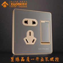 西龙开关插座 不锈钢拉丝香槟金五孔电源插座 86型二三插插座面板