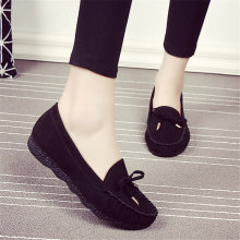 新款豆豆鞋女单鞋春秋平底休闲鞋老北京布鞋女平跟圆头工作鞋黑色