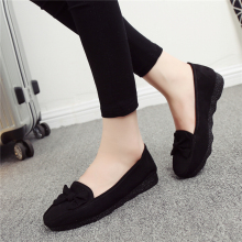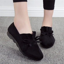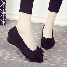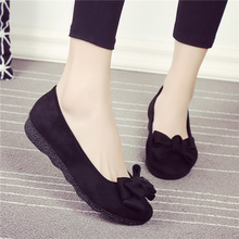 老北京布鞋女单鞋春秋平底工作休闲鞋软底妈妈鞋蝴蝶结浅口豆豆鞋