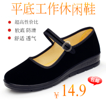正品老北京布鞋女单鞋平底软底防滑酒店工作鞋黑色休闲跳舞妈妈鞋