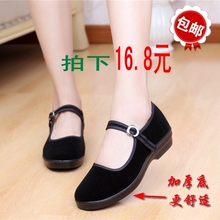 正品老北京布鞋女鞋单鞋坡跟防滑软底浅口休闲酒店职业工作鞋黑色