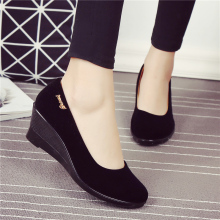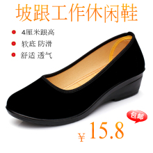 春季老北京布鞋女鞋单鞋坡跟软底防滑高跟工作鞋女黑色工装职业鞋