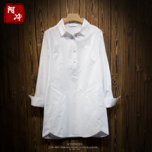 阿冲 春季长袖中长款白色衬衫女韩版大码宽松打底纯棉衬衣上衣