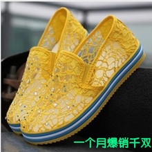 17款春夏透气网纱状懒人休闲鞋韩版帆布鞋女防滑网面镂空平底凉鞋