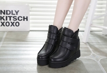 2016秋冬加棉内增高女鞋加绒魔术贴高帮鞋女厚底松糕鞋保暖休闲鞋
