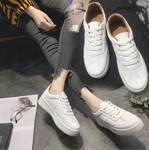 百搭2017春季新款帆布鞋女学生休闲板鞋韩版系带小白鞋厚底运动鞋