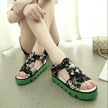 17夏季新款凉鞋女韩版防滑女士坡跟碎花厚底内增高松糕底鱼嘴女鞋