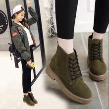 2017秋季新款短靴女真皮磨砂马丁靴平跟单靴细带短筒靴子学生女鞋