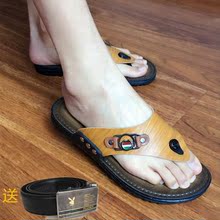 男士凉鞋男夏季真皮沙滩鞋休闲鞋子2017新款牛皮厚底防滑拖鞋男鞋
