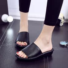 2017夏款凉拖鞋平底孕妇鞋坡跟外穿时尚拖鞋室外一字拖真皮凉鞋女