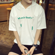 短袖连帽卫衣男套头2017夏季韩版字母宽松运动外套青少年学生t恤