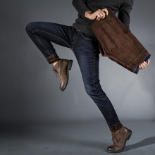 冬季加绒加厚牛仔裤男青年弹力大码宽松商务休闲直筒长裤弹性保暖