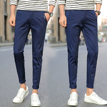 时尚休闲裤男 2017春夏潮流修身款纯色 青少年筒约百搭九分小脚裤