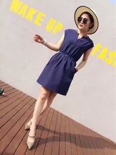罗琳格17851正品2017夏装新品时尚韩版无袖修身显瘦镶钻连衣裙