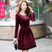 长袖金丝绒连衣裙春秋中裙妈妈装2017春装女装中年广场舞服装裙子