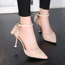 新款春季女鞋韩版尖头单鞋细跟一字扣带中空露背女蝴蝶结高跟鞋潮