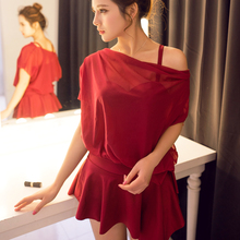 2017女泳衣连体钢托小胸聚拢游泳衣遮肚保守显瘦裙式泳装罩衫