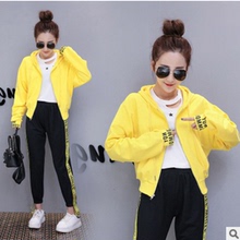 2017春秋新款长袖运动休闲显瘦套装亮黄清新韩版卫衣潮修身显瘦