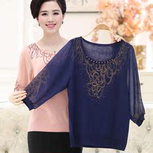 2017春夏新款女装大码中老年女装长袖打底衫妈妈装短袖T恤雪纺衫